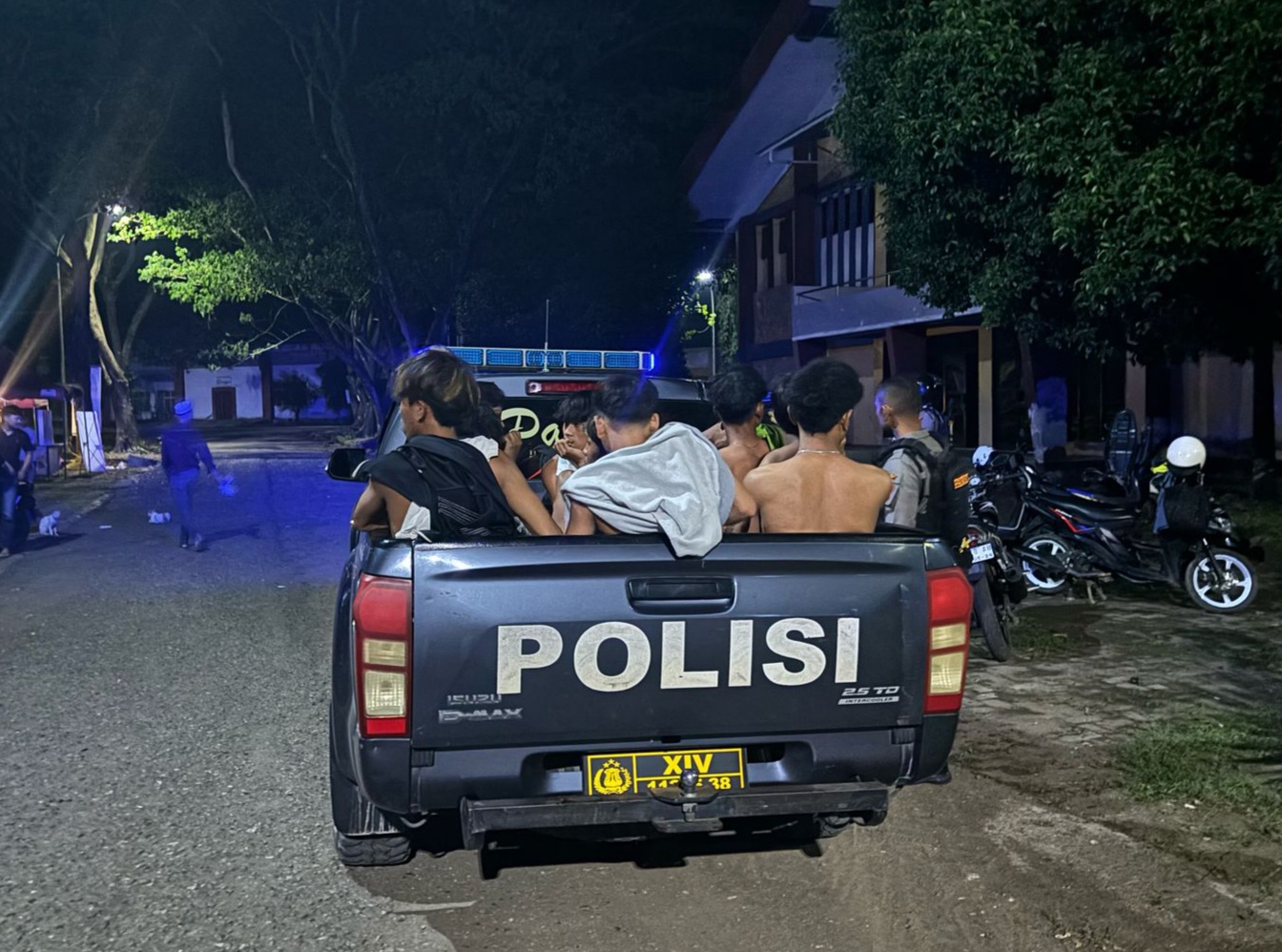 Adapun identitas yang diamankan yakni AL bin Udi (17) alamat Palakka, AF bin Darwis (16) alamat BTN Seribu, AR bin Yunus (20) alamat Mico, APR bin Bakri (15) alamat Jl. SUkawati, AS Bin Beddu (17) alamat Majang, KG bin Annasi (16) Alamat Jl. Wajo, AP bin Rahman (16) alamat BTN Seribu, RH bin Herman (16) alamat Cellu, RN bin Arman (17) Alamat Mico, AI bin Alam (18) alamat BTN Seribu dan dua perempuan yakni HI bin Hanna (21) alamat Jl. Pramuka dan AAAZ bin Alling (16) Alamat Jl. Veteran.