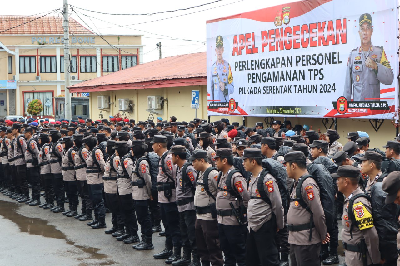 LISTINGNUSANTARA.COM,BONE – Kepolisian Resor Bone gelar apel pengecekan kesiapan Personel pengamanan Tempat Pemungutan Suara (TPS) dalam rangka persiapan Pemilihan Kepala Daerah Serentak tahun 2024 Dalam Operasi Mantap Praja 2024-2025 . Rabu (20/11/2024)