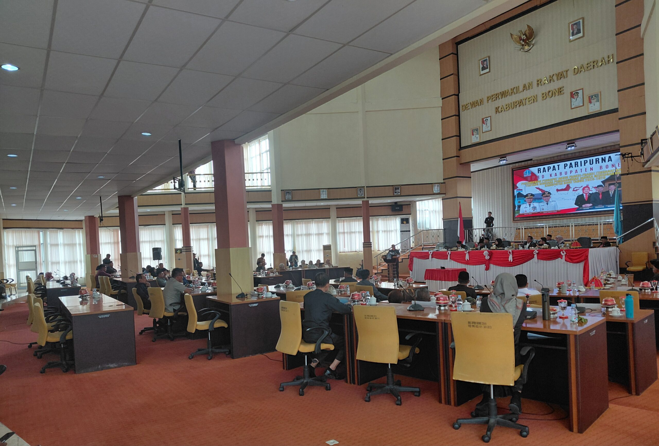 Rapat Paripurna tersebut dipimpin langsung oleh Ketua DPRD Kabupaten Bone, Andi Tenri Walilinonong,S.H yang didampingi wakil ketua 2, Irwandi Burhan dan Wakil Ketua 3 Khairul Amran.